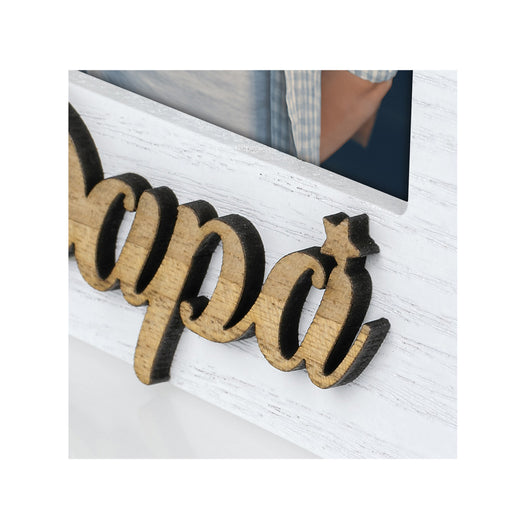 Visualizza tutti i dettagliCornice Danilo in legno, colore naturale bianco e grigio, con scritta PAPA’ a rilievo e decoro traforato, da tavolo o da parete, adatta alla festa ...