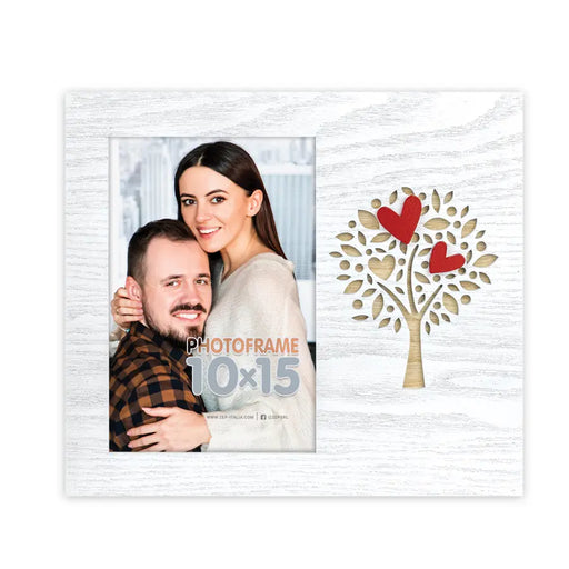 Visualizza tutti i dettagliCornice Lucia Vertical in legno, colore bianco, con decoro a forma di albero traforato e cuori rossi in 3D, da tavolo, adatta al tema dell'amore, p...