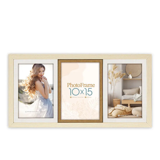 Cornice Europe B 2Q in legno, colore naturale e bianco vintage. Multifoto da parete per 2 foto 13x18, adatta per casa e ufficio. Codice: EU257